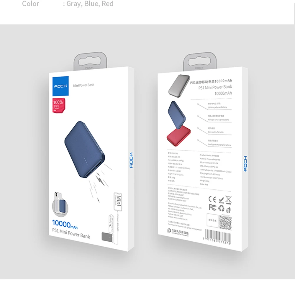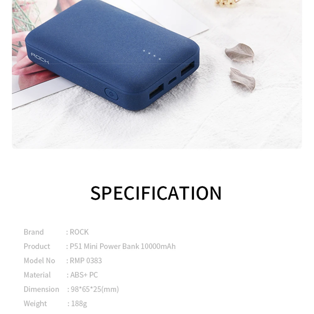 Rock 10000mah Mini Power Bank External Battery Charger Portable Charger Dual Usb Powerbank For Iphone 7 Samsung Xiaomi Huawei LG