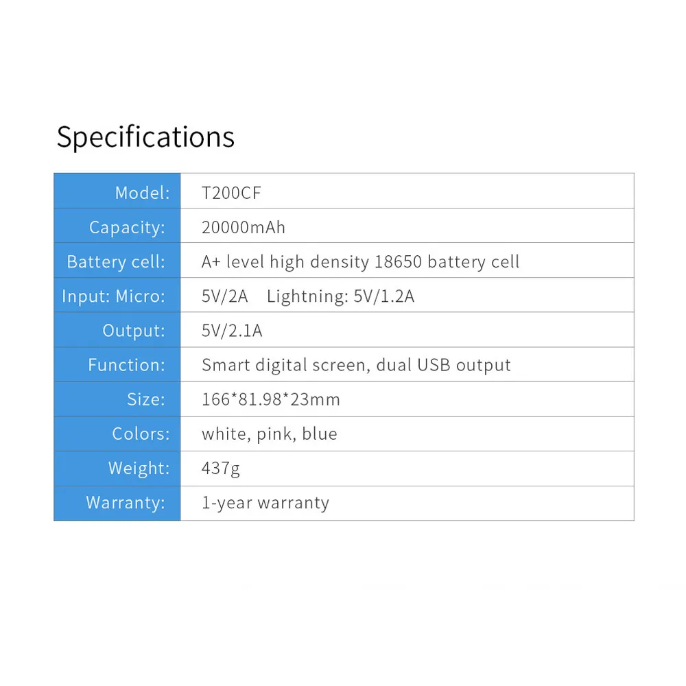 Battery Capacity: 20000mAh