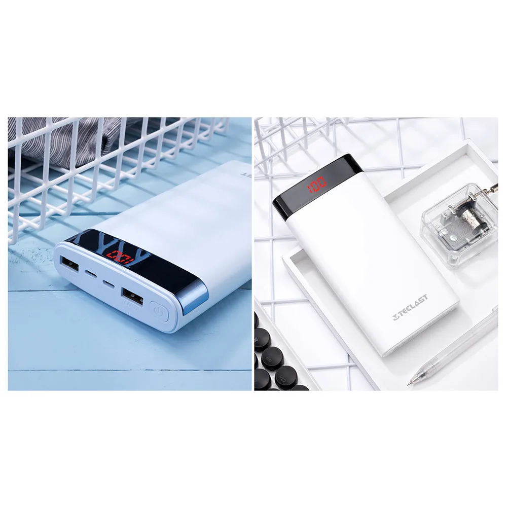 Teclast 20000mAh Power Bank 2 USB Output 8 Pin&Micro USB Dual-Input Mobile Battery for iPhone Android External Battery with LED Light